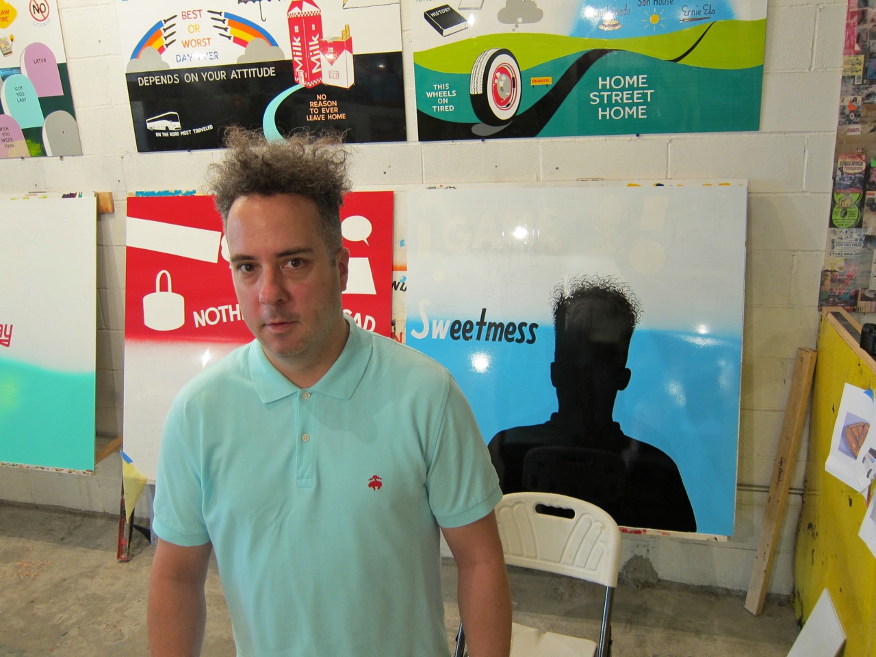 Steve Powers (also known as ESPO) was born and raised and Philadelphia, then moved to New York City in 1994. In 1984 Steve Powers started climbing rooftops in his neighbourhood and painting his alias ESPO. Dedication to making the world a better place may seem overzealous for an artist but Steve Powers is the exception to the rule. He has been an influential contributor to bettering the lives of teenagers from troubled housing projects by teaching art in Ireland, fighting for human rights in Guantanamo Bay, and spreading the love with his most recent Love Letter Street Mural Exhibit for which returned to Philadelphia. The letter, meant for one, with meaning for all, encompasses 50 walls on a 20 block stretch of market street. Drawing input, inspiration, and work from the community Powers created a letter to and from west Philly. ESPO, meaning Exterior Surface Painting Outreach, is revered for his graffiti, signage on the street as well as huge art installations in galleries such as Deitch Projects, Collette and Pennsylvania Academy of Fine Arts. Aside from his successful career as a professional gallery artist, he is also a Fullbright scholar, a participant in the 49th Venice Biennale, and author of artist books. He lives and works in Manhattan.