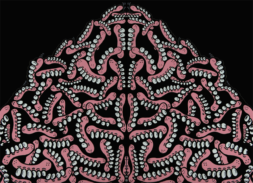 Sweet Toof’s work starts with and evolves out of his street art, whether as a solo graffiti artist or in collaboration with others. Like the streets of 1980s New York, Britain’s streets today are being reclaimed by an ever-increasing army of street artists of which Sweet Toof is one of the most prolific and artful. Typical tags, throw-ups, and more elaborate street pieces become a whole language that informs his studio works. Equally disciplined in traditional painting and printmaking techniques, Sweet Toof masterfully blends urban detritus with bygone decadence. Fusing ancient methods with modern materials, Sweet Toof’s imagery combines layers of historical and current cultural references to create unconventional, iconoclastic art that is at once both traditional and contemporary.