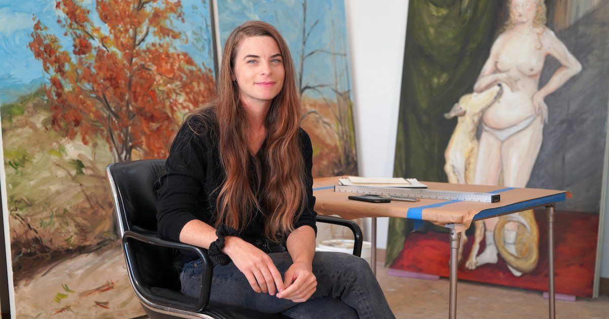 Spontaneous yet precise gesture characterizes Tanya Merrill’s wryly humorous figurative paintings that explore power dynamics while cheekily referencing art history. A Columbia MFA graduate, Merrill paints her series of cat still lifes, semi-nude women, and cinematic characters from her Brooklyn studio located in a repurposed bodega. Her painting of a domesticated horse rebelliously rearing up to escape its petrified owner The Reckoning (2017) was shown at New York’s Thierry Goldberg Gallery. She has participated in additional group exhibitions at major galleries including Almine Rech, Gagosian, Kasmin, and Half Gallery. Merrill often uses a combination of oil paint and oil stick on linen to imbue her work with the sketch-like marks of drawing.