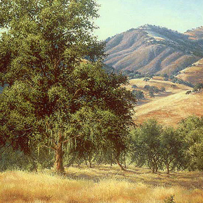 My paintings have been referred to as realism, yet that style does not capture the most fundamental aspect of my work -to induce a deep sensory response from the viewer. I challenge the viewer to become part of the landscape in a style I refer to as "Romantic-Realism". Working from detailed notes and sketches, I translate the essence of each scene's mood onto canvas—fog nestled atop an oak-studded valley, morning sunlight fingering across an inland marsh, afternoon shadows lengthening through coastal brush— sharing not only the visual rendering of nature, but also the powerful and vital energy it evokes.