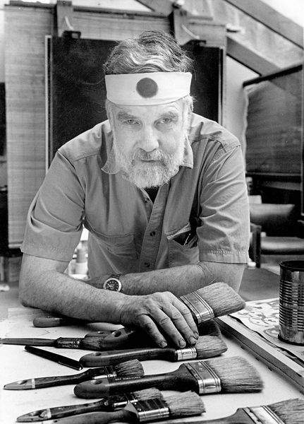 Benton’s art continued to evolve throughout his lifetime from political posters to abstract silkscreen prints, monotypes and oil paintings. Those iconic works, composed of complex layered images of bold colors, text and symbols, mesmerized his viewers. His artwork always remained original and grew in size as he matured. Eventually he was creating prints measuring more than three feet by three feet and oil paintings that were five feet by five feet and larger.