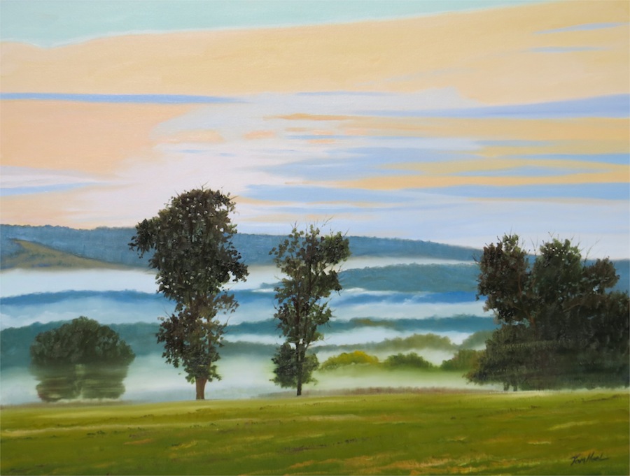 Born in Washington, D.C., raised in Maryland not so far from the family farm in Neelsville, Tom migrated to Virginia in the late 1980s where he would meet his wife to be Linda, and he too would begin a lifetime of gallery ownership and managment. While Tom Neel does paint other places and other things, mostly in oil, some in acrylic, Virginia is home and his rich oil paintings show his emotion and passion for this area. Tom is not one to do the same thing over and over again. To see a body of his work is to truly see wide artistic diversity, vision and he hopes, artistic growth. Be it an intimate look at Spring, the intensity of a humid summer day, low morning fog across a meadow, or the most dramatic sunsets and varied blues the Blue Ridge Mountains give us. This is where he brings the viewer’s senses. He wants to do more than just have you see what he sees. Rather, he strives to give you an emotional connection to it.