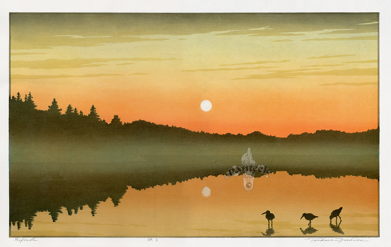 Tsukasa Yoshida was born in 1949 as the eldest son of Toshi Yoshida. He has continued the heritage and tradition of his family and became an artist with the focus on woodblock printmaking, while other memebers of the widespread Yoshida family ventured also into other techniques and forms of artistic expression. In 1981 a famous exhibition was held in the famous Philadelphia Art Museum, titled Three Generations. The exhibition was entirely devoted to the Yoshida family. Tsukioka represented the third generation in this museum art show.