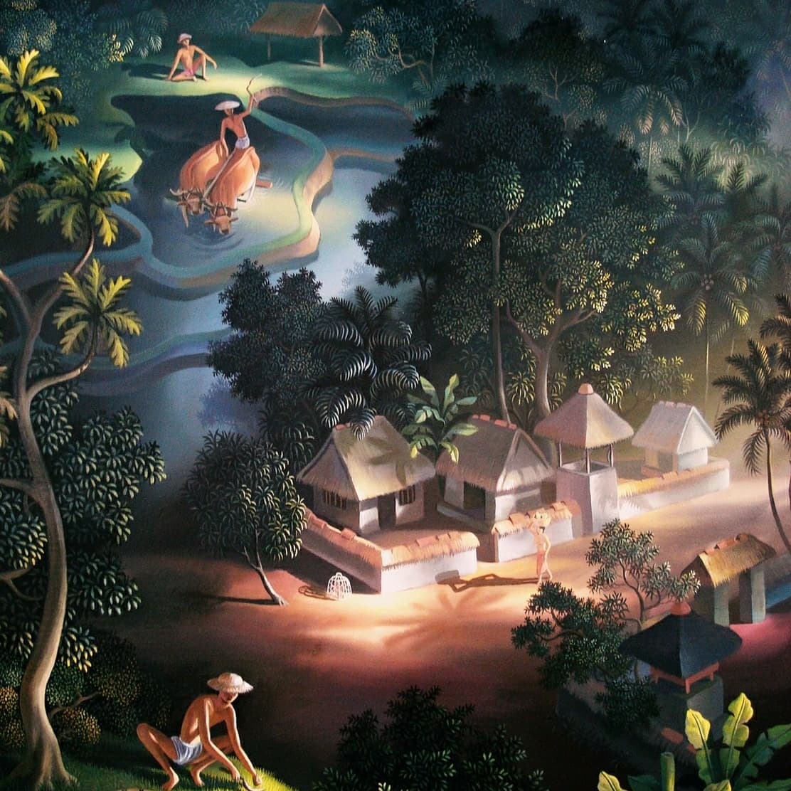 Covarrubias and Spies became very close. Covarrubias wrote about his friend: "The months went by as Rose and I roamed all over the island with Spies, watching strange ceremonies, enjoying their music, listening to fantastic tales, camping in the wilds of West Bali or on the coral reefs of Sanur. Walter loved to collect velvety dragonflies, strange spiders and sea-slugs, not in a naturalist's box, but in minutely accurate drawings. For days at a time he would be in his tent drawing them, because once dead, their beautiful colors disappeared. He was temperamental when he went into seclusion to paint, he would work incessantly for months on one of his rare canvases. (...). He also painted dreamlike landscapes in which every branch and every leaf is carefully painted, done with the love of a Persian miniaturist, a Cranach, a Breughel or a Douanier Rousseau".