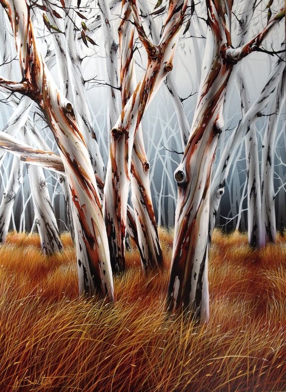 Born in the small rural town of Smithton, Tasmania, Warren remembers drawing and painting from a very early age, winning many awards during his school years and beginning his commercial artistic career during high school. An apprenticeship in sign-making and graphic design, followed by running his own sign factory, enabled him to maintain a secure income while gaining the confidence to render large canvases along with solid design and brush skills. A move to Noosa enabled a career transition to full-time artist and developing his own style with contemporary flora and surrealist landscapes. Warren has now been painting full-time for nearly twenty years and still resides in and is inspired by Noosa and its vibrant community of artisans.