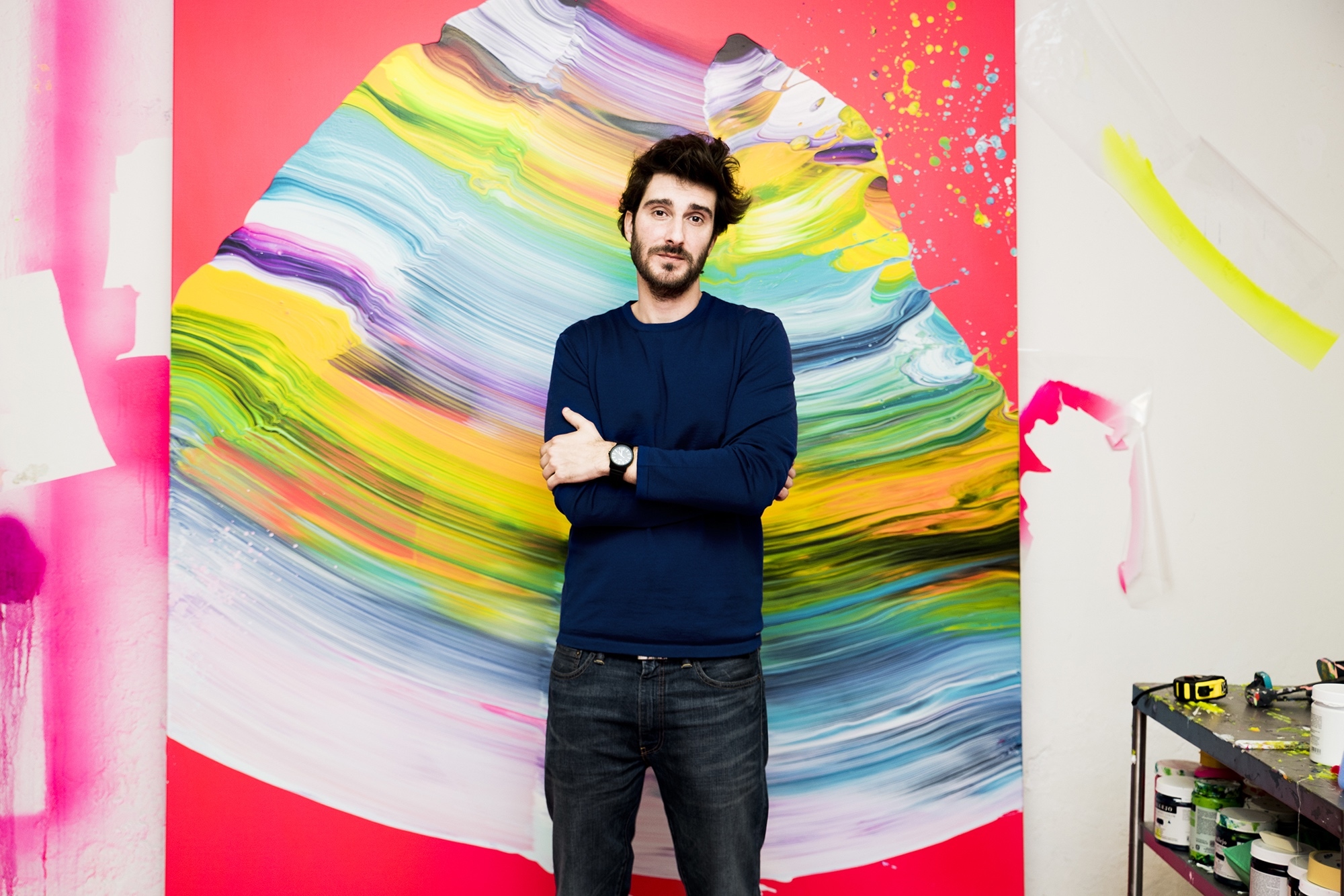 Yago Hortal (Barcelona, 1983), studied Fine Arts at the University of Barcelona and the University of Seville. In 2007, one year after graduating, he wins the 49th Prize for Young Painters. The following year, at only 25 years of age, he began to exhibit not only in Spain but also in the rest of Europe and the United States. His paintings maintain a tight relationship between the work of art and action painting itself. The canvas forms part of a performance in which the artist consciously creates spontaneous color forms in an infinite gamma, expressing passion and vibrancy. The painting seems to come out of the canvas, causing a desire to touch it and creating textural sensations.