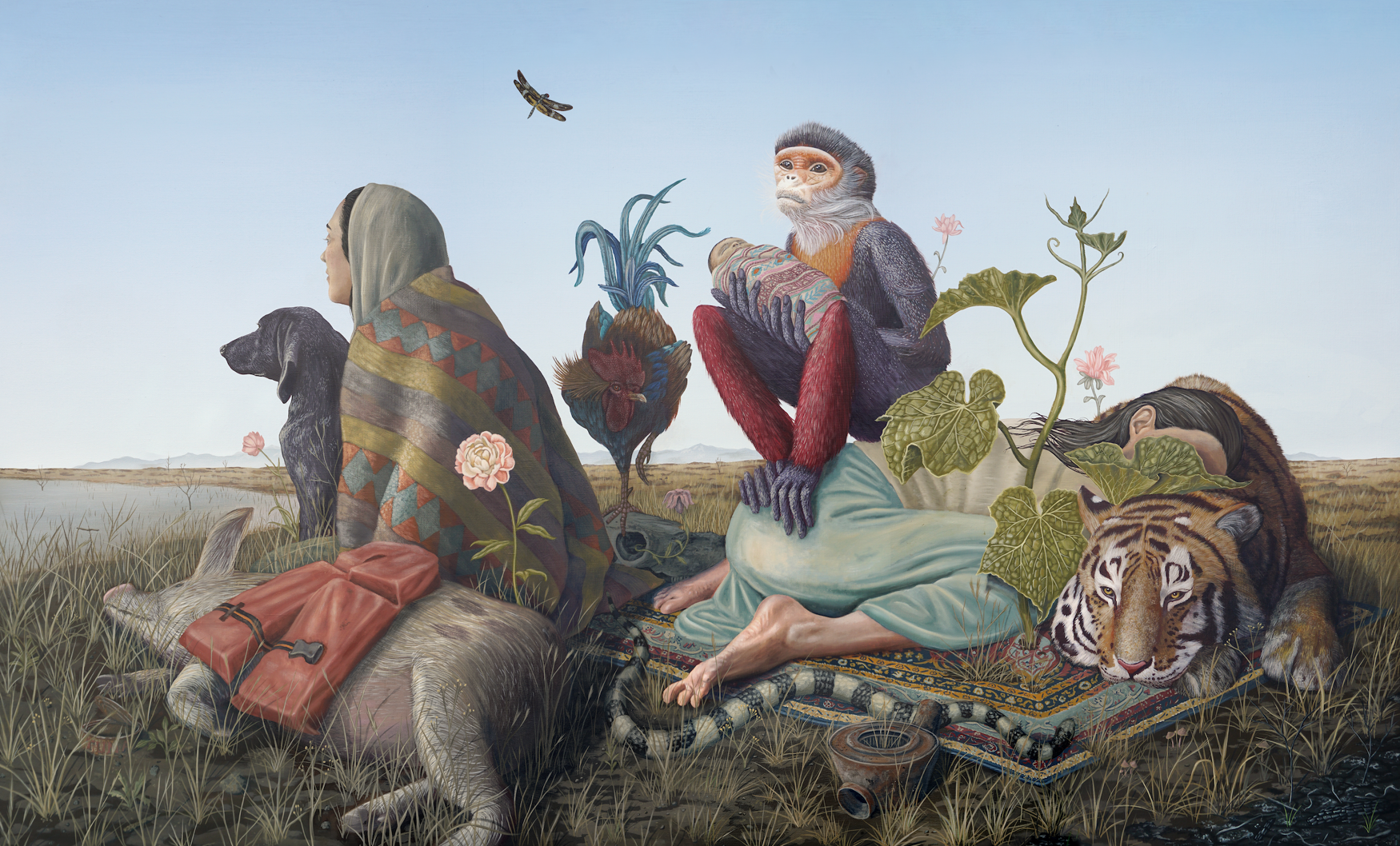 Aaron Glasson is an artist and creative director from Auckland, New Zealand. Aaron’s art covers a diverse range of mediums consisting of installations, vibrant murals, paintings, illustration, and films. His art explores themes that discuss the human relationship to the natural environment, community empowerment and education. Aaron’s works are featured as a part of the opening of URBAN NATION Museum in 2017. The artist, born in New Zealand and resides in San Diego, in addition to his illustrations and gallery art, also creates murals across the globe. His murals, both surreal and vibrant in ethereal aspects, also firm foundations in reality, his works frequently depicting real people on their own personal journeys. Glasson’s topics, which centre on nature, biology and botany, are featured in the aspects of his own life as the creative director of an international conservation organisation he began named PangeaSeed, an effort that aims to gather together artists, environmentalists and activists of ecology and to raise awareness.