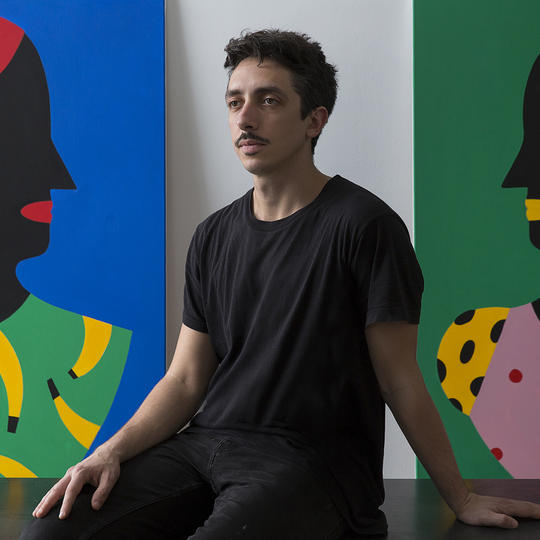Agostino Iacurci (1986) is an Italian-born, Berlin-based artist. His practice embraces a wide range of media, including painting, mural, sculpture, drawing, and installation. He creates immersive spaces to transform the perception of given environments. Recent solo exhibitions include: Tracing Vitruvio, Musei Civici, Pesaro (2019); Gypsoteca, M77 Gallery, Milano (2018); Trompe l’oeil, Celaya Brothers Gallery, Mexico City (2017). Amongst the recent group shows: Talent Prize 2019, Mattatoio, Roma (2019); Graffiare il presente, Casa Testori, Novate Milanese (2018); Urban Art Biennale, Völkinger Hütte, European Centre for Art and Industrial Culture (2017); Cross the streets, Museo Macro Rome (2017); FADA, House of Madness, The Watermill Center, New York (2016); 16° Premio Cairo, Palazzo della Permanente, Milan (2015). Since 2009 he has been creating monumental wall-paintings and installations for public and private institutions such as: BBDO Headquarter, South­ bank, London (2018); Yakutsk Biennale, Yakutsk (2017); Distrito Tec University, Monterrey (2016); Govind Puri Metro Station, New Delhi (2016); Istituto Mario Penna, Belo Horizonte, Brazil; Puerto Rico’s Stadium, Bayamòn (2015); Fubon Art Foundation, Taipei (2012). He has developed collaborations with international brands and publishers including Apple, Adidas, Einaudi, Herman Miller, Laterza, La Repubblica, MailChimp, Mindspace, Penguin books, Starbucks, TBWA, The New Yorker, Urban Outfitters, Vespa, Warby Parker. He was the recipient of Premio New York 2020 promoted by MiBACT, Ministry of Foreign Affairs of Italy, Italian Cultural Insti­tute of New York, Italian Academy – Columbia University and ISCP.