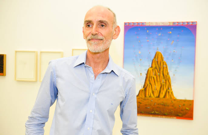 ​ALEX CERVENY por Suely Grisanti O apuro técnico é um denominador comum na obra de Alex Cerveny. Ele não se prende a uma única técnica ou material: desenhos, esculturas, pinturas, bordados, colagens, cerâmicas, fotografias e gravuras, estão presentes em sua obra. Como tema, utiliza-se de referências históricas, “algumas delas biográficas, como as figuras retorcidas e elásticas – lembranças de sua vivência de artista circense; outras literárias, e outras, ainda, dos meios de comunicação em massa, criando uma intrigada alegoria” (Bienal Naïfs, 2010). Valoriza o processo de trabalho e o diálogo entre suas obras. Como resumiu o artista, “Eu me sinto mais um escritor que escreve imagens, me sinto mais um cronista que um artista. A tradição que me agrada na arte é essa de contar histórias, como retábulos, como os muros assírios que contam histórias de batalhas...” Alexandro Júlio de Oliveira Cerveny nasceu em São Paulo em 1963. Seus pais, um arquiteto e uma professora especializada em ensino para cegos, foram os primeiros responsáveis por seu interesse pelas artes. O pai, apresentando e fornecendo a ele os vários materiais disponíveis para se expressar através do desenho e a mãe lhe ensinando que as pessoas poderiam ter diferentes formas de olhar e observar o mundo ao seu redor – as distintas formas de visão. Iniciou seus estudos em uma escola de método experimental (Grupo Escolar e Ginásio Experimental Dr. Edmundo de Carvalho), na Lapa, que se destacava no meio pedagógico, graças à atuação de educadores e pesquisadores como Terezinha Fran, Diva F. Sgueglia, Ana Maria Popovic entre outros. A escola desde cedo lhe proporcionou uma abertura para novas ideias e para as artes.