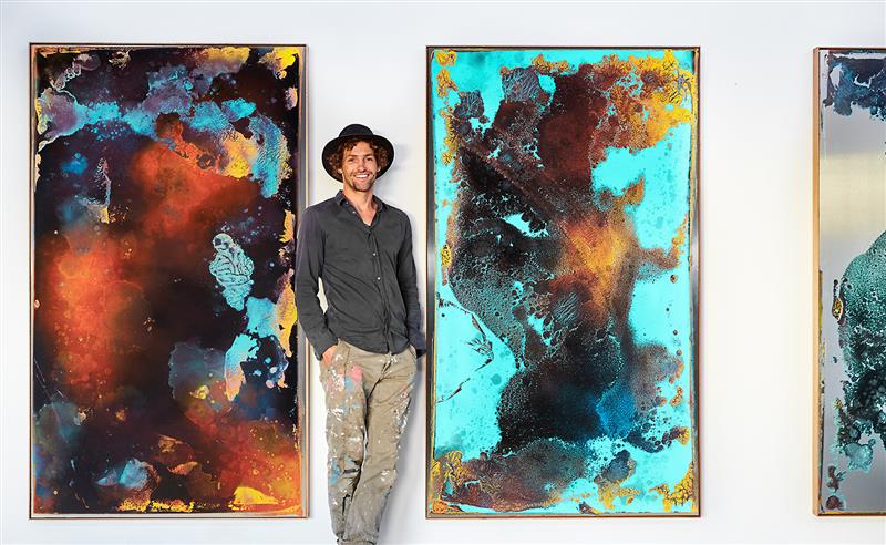 Brett Weir works primarily on aluminium and copper, drawing inspiration from his environment, memory and various musical influences. Weir has divided his time equally between Zürich, Switzerland and Gippsland, Australia for much of the past decade. In March, 2018 Weir presented Lunar Paintings, the inaugural solo exhibition at the newly redeveloped Gippsland Art Gallery, Sale.