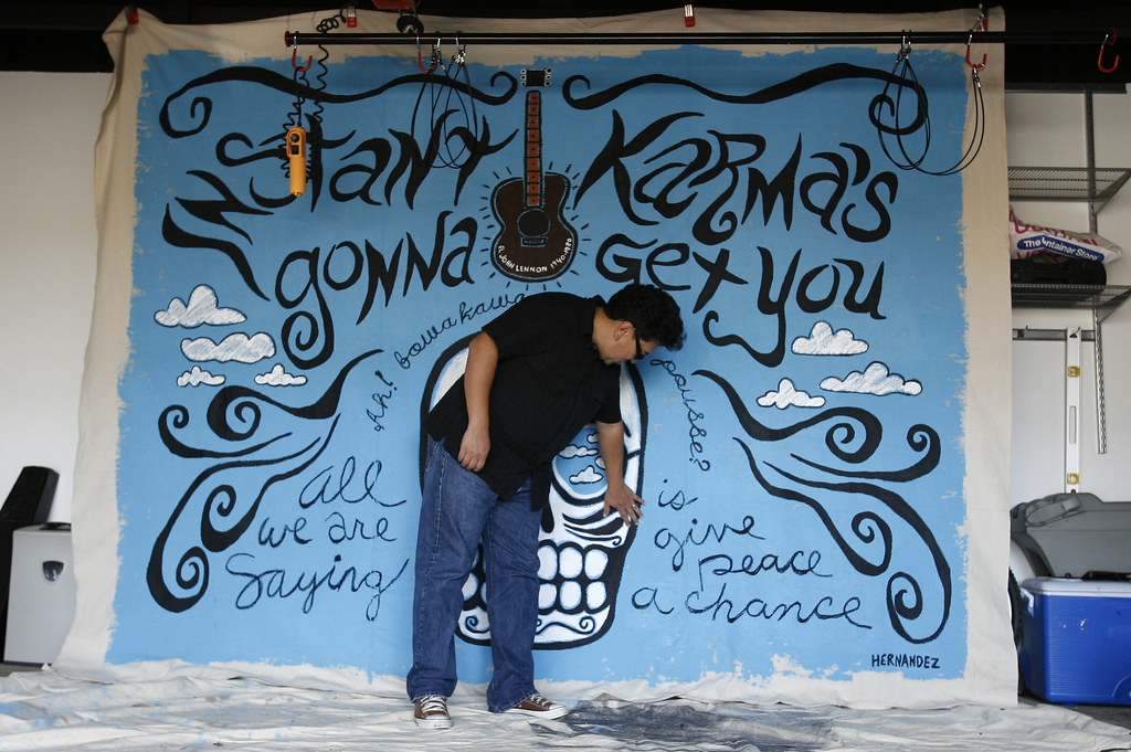 The work of Houston-based serigraphy artist Carlos Hernandez has been featured in the 2011 Communication Arts Typography annual, the 2011 & 2012 Communication Arts Illustration annual and was also recently published in the 2012 book Mexican Graphics by Korero Books-UK. He has designed and printed gig posters for such artists as The Kills, Arcade Fire, Kings of Leon, Santana, and more. Most recently, he was selected as the official poster artist to design the commemorative poster for the 2013 Austin City Limits Music Festival. Carlos is a founding partner of Burning Bones Press, a full-service printmaking studio located in the Houston Heights, and has served as an instructor of Screen Printing at Rice University, Department of Visual and Dramatic Arts. Corporate work has included Miller Brewing Company, Google, Lincoln Motor Company, Live Nation, New West Records, C3 Presents, Hohner USA, Goode Company, Underbelly, the Houston Chronicle, Saint Arnold Brewing Company and more. One of his career highlights has been his work with childhood idol and hot rod legend, Ed “Big Daddy” Roth. Carlos is also the ​creator of the apparel line – Electric Calavera. Carlos’ work was included in the 2012 Oso Bay Biennial Heavy Hitters Exhibition, as well as in the 2012 AIGA Texas Show. He has received awards from American Institute of Graphic Artists, American Advertising Federation, “Judges Favorite” from the Art Directors Club Houston, and “Best in Show” from the American Marketing Association. Carlos was a featured speaker during the “Design Now – Houston” series at the Contemporary Arts Museum Houston and has served as an instructor at Frogman’s. He is a member of the legendary Outlaw Printmakers. Carlos is a graduate of the Texas Tech Graphic Design Program.