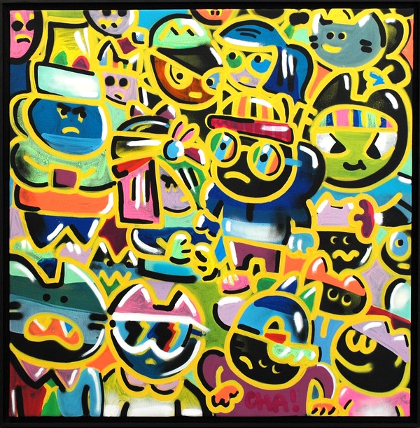 Alberto Vejarano, also known as Chanoir, was born in 1976. He lives and works in Paris. In 1996 he gets involved in the post graffiti Parisian culture, creating the Chanoir persona. He invented the systematic transformation of his logo. He studied at the Beaux Arts in Paris with Jean-Michel Alberola. In 2002 after his graduation, he explores the pictorial adaptations for children of European literature made in America and in Japan. He shows the different mythologies of cartoons in the context of our globalized culture. He takes part in the show "L'humour dans l'art" then assists François Boirond for the exhibition "La beauté" in Avignon. He produced the documentary film "Murs libres" about the street art scene in Barcelona.