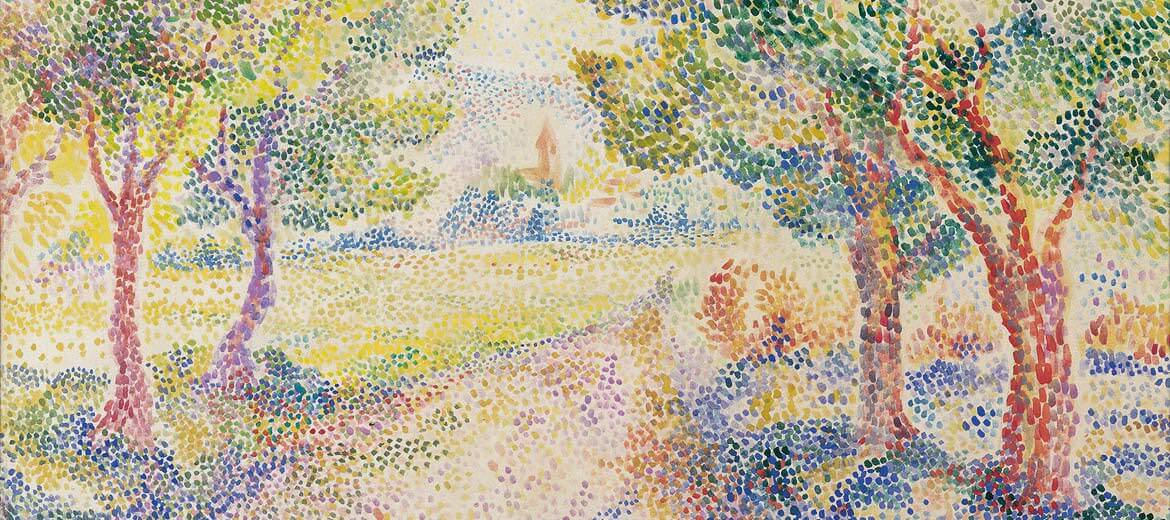 Hippolyte Petitjean (11 September 1854, Mâcon - 18 September 1929, Paris) was a French Post-Impressionist painter who practiced the technique of pointillism . Biography When he was 13, Petitjean began his art studies at the Ecole de dessin in Mâcon. The town gave him a grant to continue at the École des Beaux-Arts where he studied under Alexandre Cabanel and Pierre Puvis de Chavannes . He was later influenced by Georges Seurat whom he met in Paris in 1884. [1] After Seurat encouraged him to join the Neo-Impressionists, he was also influenced by Paul Signac and Camille Pissarro . He adopted the pointillist technique until 1894 when he started to combine it with more feathery strokes. In 1910, he returned to Neo-Impressionismwith a series of decorative watercolors of landscapes and people set off by widely spaced rounded spots of pure color. [2] Petitjean exhibited at the Salon des Indépendants in 1891 and thereafter at Le Brac de Bouteville together with the symbolists and impressionists. He also exhibited in Brussels in 1893 and 1898, Berlin in 1898, Weimar in 1903, and Wiesbaden in 1921. [1] [2]