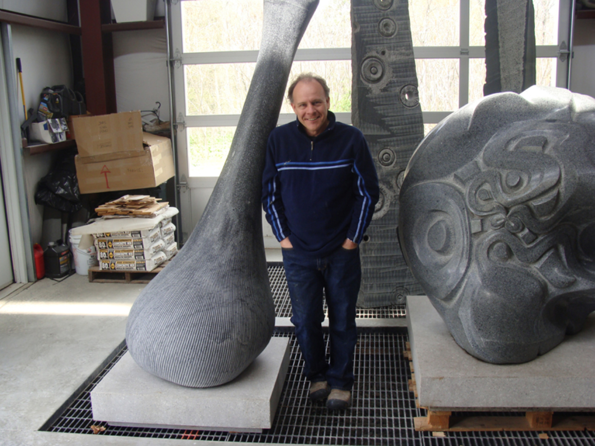 sherwood’s most recent sculptures represent the further development of his ongoing dialogue with the associative sensations of form and surface. Forms are compressed, distorted, or squeezed, and made more intimate by subtle adjustments of scale. He does not imitate the body; however, the sensual aspect of the manipulated shape proposes physicality to the viewer even in the absence of figuration. Carved lines contour the surfaces to emphasize the form, create the illusion of expansiveness and provoke associations to patterning, layering and veiled imagery. We are invited to investigate the visual grasp of intuitive perception. The tension between shape and skin that characterizes Isherwood’s work is further reflected in the tensions surrounding his technique and material. His sculptures are the result of a unique process in which the ancient and the modern confront one another: marble, the oldest and most sensual sculptural material, is carved with the help of high-tech methods. This allows Isherwood to attain an uncompromised precision in his treatment of the incised surfaces, which play with and against the swelling, fleshy, soft and yet substantial character of his organic forms.