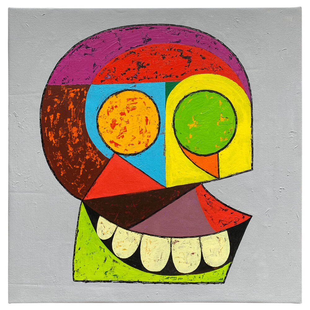 Jonathan Edelhuber an Arkansas native, earned a B.F.A. with an emphasis on Graphic Design from Harding University. He has exhibited in Los Angeles, London, and Nashville, Tennessee where he currently lives and runs his practice. Working primarily in oil and acrylic, Edelhuber’s paintings, drawings, and sculptures meld elements of the modernist motifs of Picasso and Matisse filtered through a pop sensibility borrowed from comics and cartoons. Often incorporating stylized text, and occasionally using non-traditional supports (quilts, for example), Edelhuber explores the interaction of fine art and design. Edelhuber democratically adorns his canvases and objects with his iconic visual style, all within a spirit that equally values Bauhaus and Daniel Clowes.