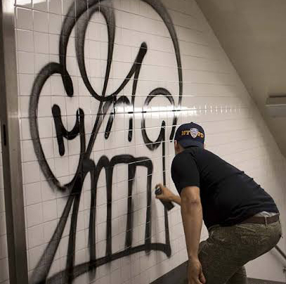 KATSU is a modern day graffiti legend. His work is overtly in-your-face and unavoidable. Emerging in NYC during the 1990s, the subversive energy driving his work has granted him notoriety — or ‘fame tokens’ — among the graffiti and street art world. Walk through the streets of any NYC neighborhood and you are more than likely in the presence of a KATSU piece, whether realized or not. Surfaces bombed with stickers of his iconic single-stroke skulls, wheat-pastes of a battered Mark Zuckerberg, hijacked telephone booth advertisements, extinguisher pieces, traditional tags—KATSU’s work is intentionally destructive and confrontational. While claiming not to be an artist himself, KATSU effectively uses graffiti as a vehicle to criticize current issues of contemporary culture and urban living — just the right mix of vandalism, technology and ingenious.