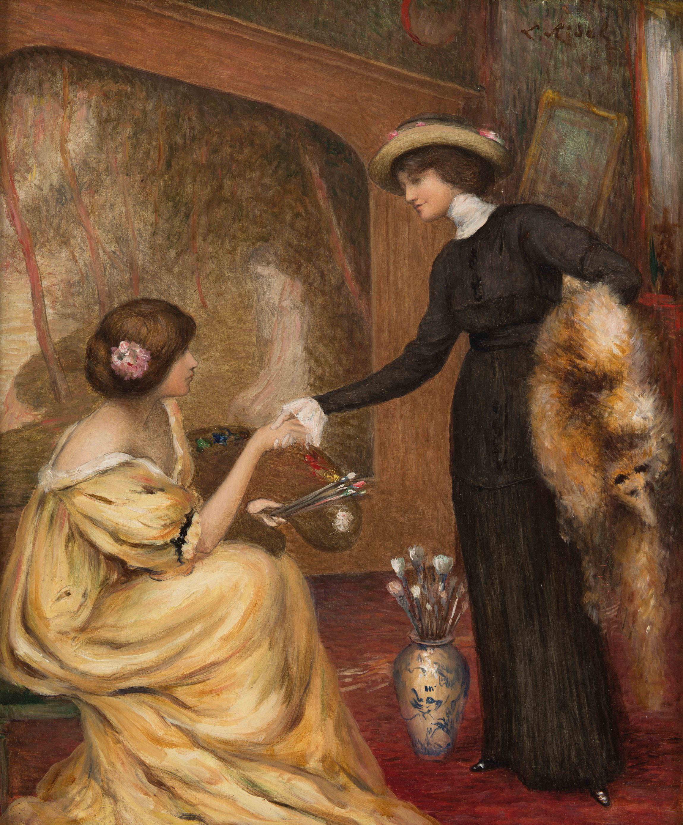 Louis Ridel studied at the Académie Julian then under the direction of Gustave Moreau at the Ecole des Beaux-Arts in Paris in 1889 (with Matisse, Camoin, Marquet and Rouault). He exhibited at the Salon of French Artists between 1893 and 1935, at the Salon des Tuileries between 1927 and 1934, at the Universal Exhibition in Ghent in 1913 and at the famous gallery Georges Petit (1909-1910). The artist's works are present in the museums of Nantes, Strasbourg, Pont-Aven but also Tokyo, Buenos Aires and Rio de Janeiro. This symbolist painter, friend of Aman-Jean, Maxence and Albert Besnard, mainly represented women of the bourgeoisie, ethereal and diaphanous or landscapes of his native region, Brittany. In 1896, he obtained an honorable mention from the Salon of French artists, then a third class medal in 1898 and second class in 1900. In 1901, he was Hors Concours. In 1909, he was appointed knight of the Legion of Honor2. He receives official orders for the Senate, the Ministry of Public Works or the town hall of the 12th arrondissement of Paris.