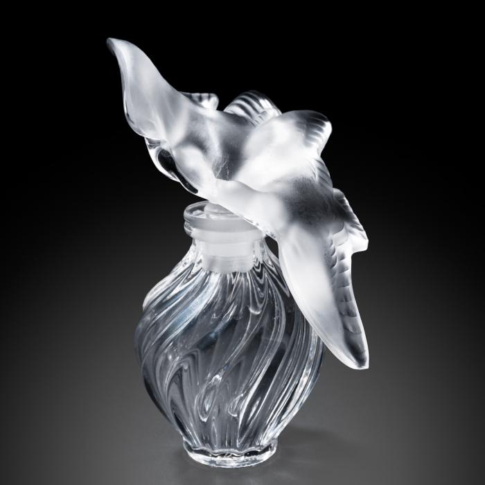 Marc Lalique was born in 1900 in Paris, the son of René Lalique and Alice Ledru and brother of Suzanne Lalique-Haviland. He was responsible for the move from glass to crystal in the early 1950s. After studying at the Ecole des Arts Décoratifs de Paris, Marc Lalique joined his father in the family business in 1922. He was a highly skilled technician, and made frequent visits to the Wingen-sur-Moder factory to oversee new production techniques. On the death of his father in 1945, Marc took the helm. His technical bent and know-how led him to renovate and modernise the Wingen-sur-Moder factory, and Lalique rapidly became one of the finest crystal manufacturers not only in France but worldwide. The contrast between sheer transparency and satin sheen became Lalique’s hallmark, at home and abroad. Marc Lalique’s most famous pieces include the Angel glass, inspired by the Smiling Angel in Reims Cathedral, a reference to the Lalique family’s origins in the Champagne region, and the famous L'Air du Temps Nina Ricci perfume bottle. He died in 1977, leaving his daughter Marie-Claude in charge of the Cristallerie Lalique.