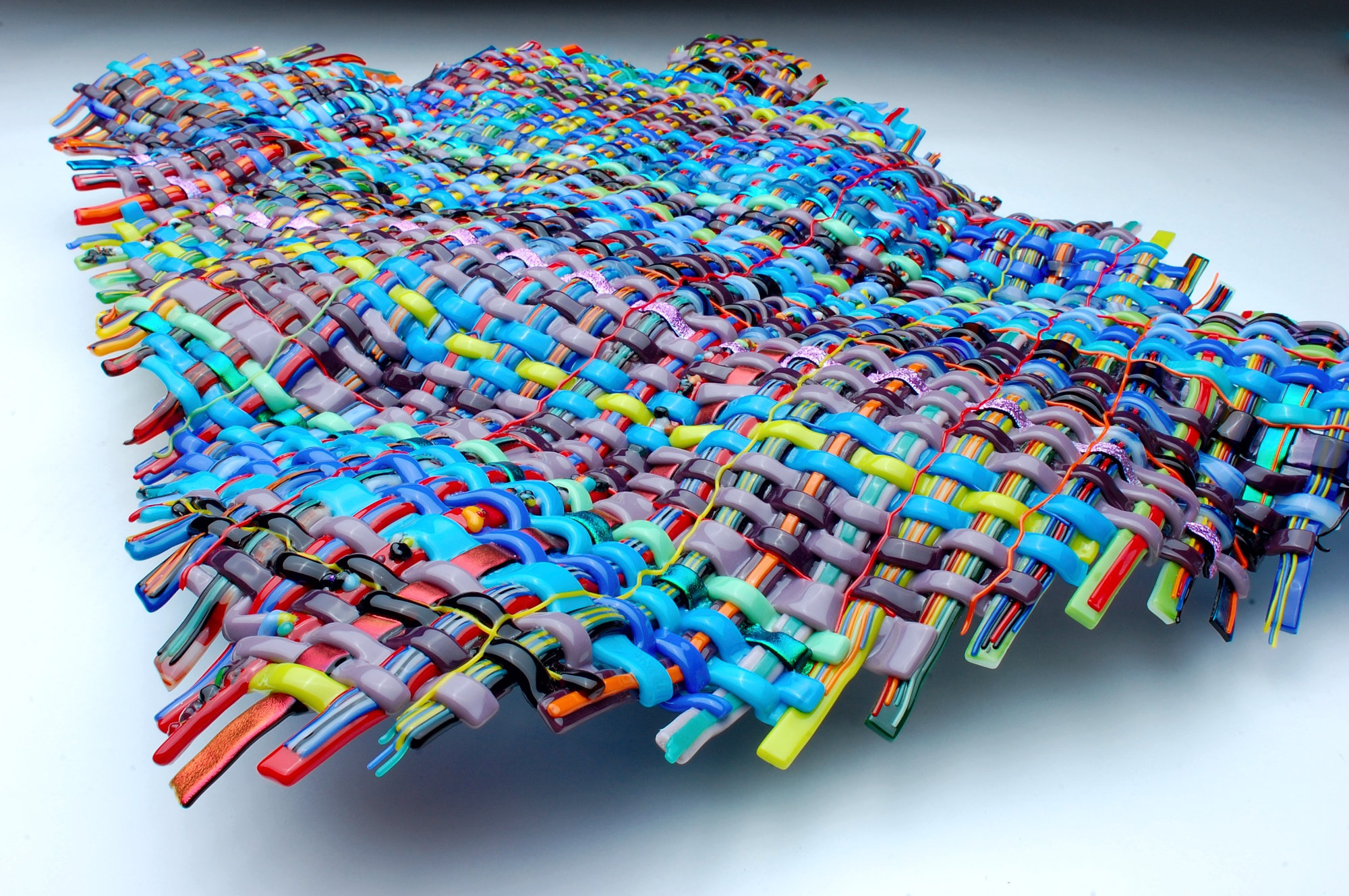 Mark Lewanski is the engineer, inventor and artist behind these beautifully handcrafted pieces of woven glass. He started working with glass in 2000 and has ultimately become a creative vanguard in the field, having created hundreds of unique glass surfaces. Mark works from his downtown studio in the charming riverside town of Portland, MI, with his wife, Mary and two children, Augustus and Ignatius with an additional studio in Lansing, MI and a gallery in Arizona.