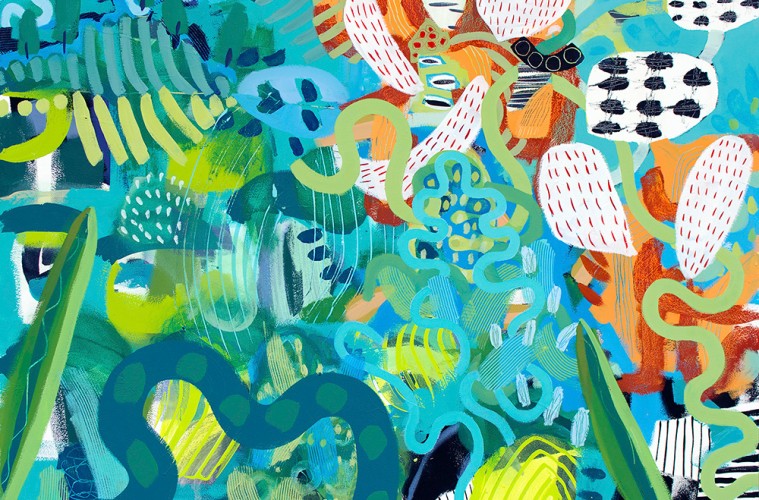 A 1975 graduate of the Maryland Institute College of Art, Mike McConnell worked for more than 30 years as an illustrator before focusing on his fine art. He often turns to nature for inspiration for the vivid visual stories he tells. He uses paint in a collage-like way, cutting out shapes with vibrant colors on handmade wood panels, paper, and found material. McConnell won the President’s Best of Show award for the 2016 Biennial Maryland Regional Juried Art Exhibition for his painting Bear Carver. He is also a 2016 Maryland State Arts Council Individual Artist Award winner and a 2017 finalist for the 13th Annual Bethesda Painting Awards.
