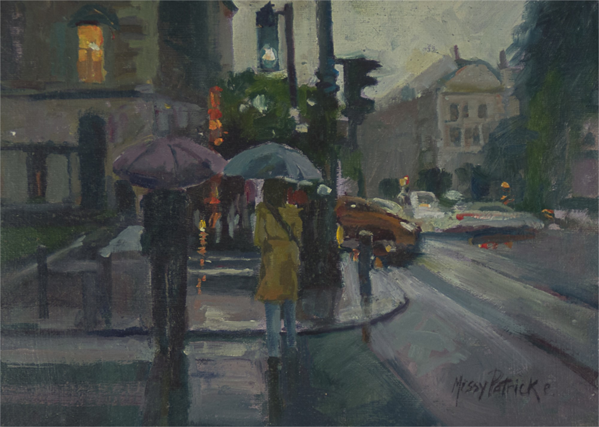 Missy Patrick is known as an exceptional oil painter and her canvases are a harmonious expression of brushwork, light, and color. The rich surfaces of her work occasionally depict cityscapes but more frequently it's the natural landscape that moves from her palette. Patrick enjoys the "Plein Air" method, taking inspiration while painting outdoors. She says, "I developed a kinship to outdoor landscape because I spent most of my childhood living on a river next untouched woods." She says that much of her painting includes water--the love of which comes from those early experiences. "As a young child, I learned that I can capture and record my relationship with nature."
