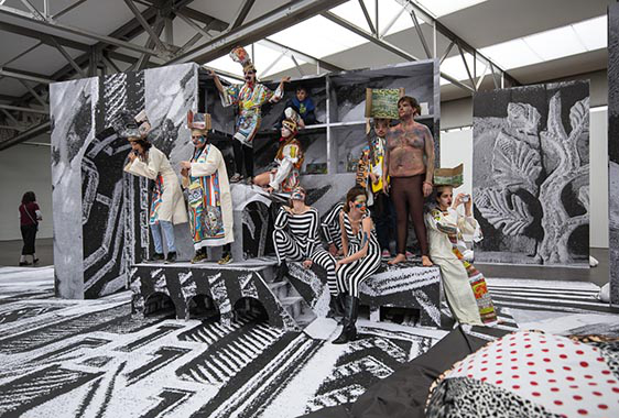 Monster Chetwynd (b. 1973, London) lives and works in Glasgow. Chetwynd graduated from the Royal College of Art with an MA in painting (2004), following a BA in Fine Art at the Slade School of Art (2000) and a BA in Social Anthropology and History at UCL (1995) (all London). Known for her exuberant performance pieces, featuring handmade costumes, props and sets. Chetwynd describes her work as ‘impatiently made’, often re-using cheap materials that are easy to process and to use by the many performers she invites to participate, emphasizing the notion of collective development that informs much of the artist’s work.