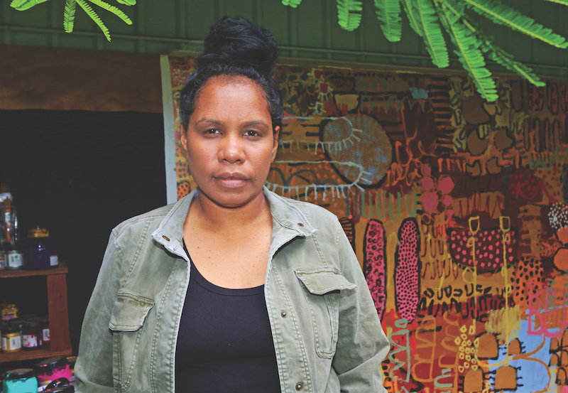 Living in Coen, a small township located on the eastern side of Cape York Peninsula in far north Queensland, Kaantju and Umpila artist Naomi Hobson’s work invokes the tropical landscape of the reefs and rainforests of her immediate surrounds. Her paintings reference not only specific tracts of country, but an intimate experience of it; the light at certain times of the day, shifting sandbanks, and tidal ebbs and flows. I paint in my own personal space where I feel most comfortable, including my back veranda, in the dry river beds, on the banks of my childhood fishing places, as well as at the camp sites that my families have lived and spent time for thousands of years. I will take time to look at the miniature things, the tiny little things that nature hides. Alongside her painting, Naomi works in ceramics and photography. She is represented in the collections of the National Gallery of Australia, QAGOMA, Museum and Art Gallery of the Northern Territory, and the National Gallery of Victoria. Naomi was winner of The Alice Prize in 2016. Profile Image: Naomi Hobson Artwork: Notes From My Country, 2020 © Naomi Hobson, 2020. Photo: Chadwe, Integrated Media, 2020