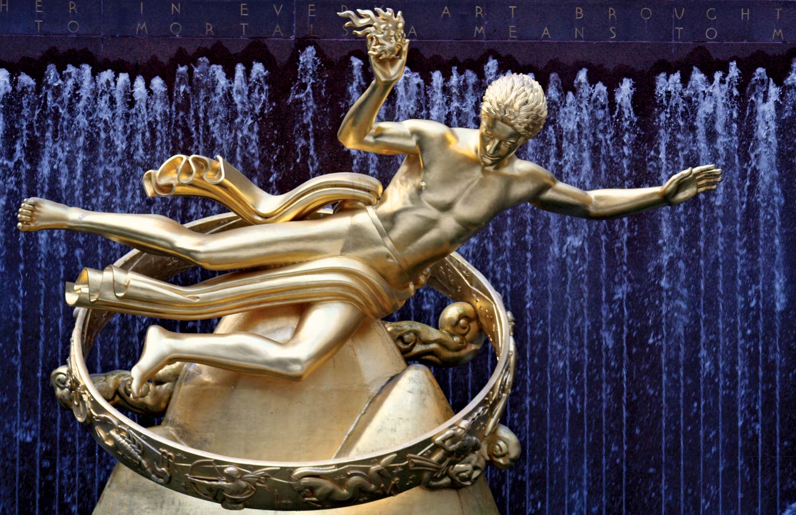 Born and raised in St. Paul, Minnesota, sculptor Paul Manship attended the Minneapolis Institute of Art. At the age of twenty he moved to Philadelphia, where he was a sculptor's assistant as well as a student at the Pennsylvania Academy of the Fine Arts. In 1909 he won the prestigious Prix de Rome, which enabled him to study at the American Academy in Rome. While in Italy, Manship became familiar with ancient Greek and Roman art, which, in turn, inspired his own work. Returning to the United States in 1912, he gained immediate recognition for his cast bronzes, which often featured mythological subjects. Manship never fully abandoned a realistic depiction of the human figure or nature in his work; however, his forms were highly stylized and created a sense of flowing contour and rhythm. Throughout the 1930s Manship had several exhibitions and received numerous sculpture commissions, including what is perhaps his best-known work, Prometheus, created in 1933 for the fountain in New York's Rockefeller Center Plaza. Although abstract art became prominent after World War II, Manship continued working in his established style, and he managed to maintain a solid reputation. He was named president of the National Sculpture Society and continued to create and exhibit his sleek, refined works.