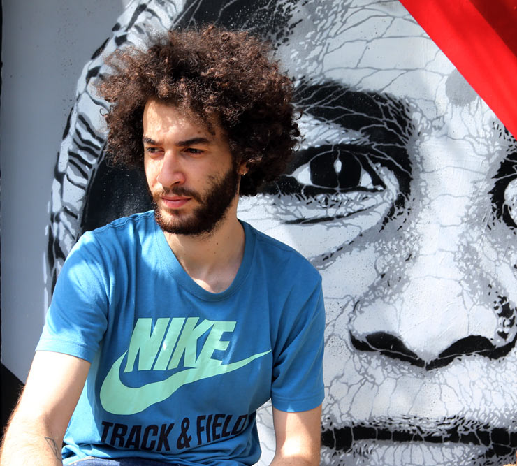 Joao Samina was born in Portugal in 1989. He currently resides both in Portugal and Brazil. Since his youth he has been in contact with different mediums of artistic expression, concentrating mostly on painting. Aged 14, he started his path into the world of street art and developed his very own style with inspiration from what he witnessed on the streets of Portugal. During this time he was exposed to stencil art and started to explore within this medium. As his ambition grew, so did his projects and he worked on increasingly larger scale. The skills he learned during his degree in Architecture from 2007-2013, especially geometry and the studies of space proved to be very inspiring to his art. Since then, he has been looking for different and exciting ways to express his vision and kept improving the stencil techniques he employs into more intricate and exciting works of art, imposing the conflict between geometry and human natural form. For the past few years he has been producing work in a consistent form, his own unique style. His vision solidified and his art is now a mixture of his roots in Architecture, his interest in graphic Design and the experience of years of being out in the streets of Lisbon trying new things and breaking the form with street art. Since 2010 he collaborated with many other artists. He took his opportunities and produced work in several countries such as Spain, France, The Netherlands, Brazil, Turkey and India.