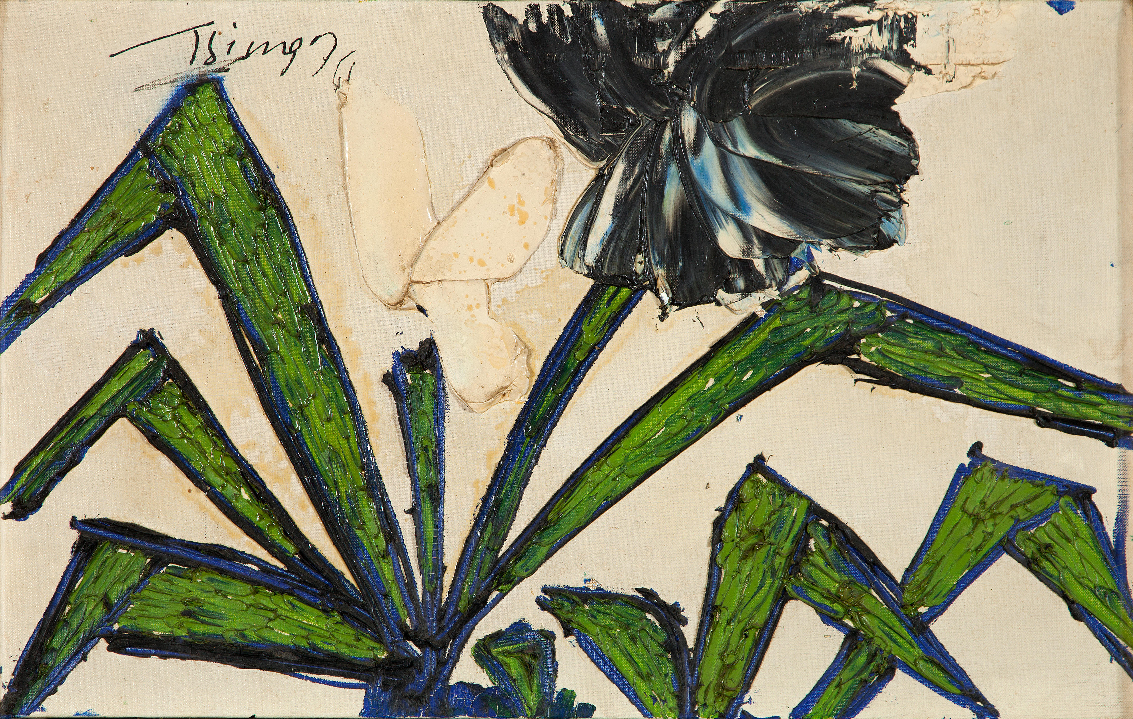 Born in Eleusis, Greece, Tsingos studied in the Architecture Department of the National Technical University of Athens and worked as an architect. In 1947, he collaborated with the architects of the new capital of Brazil. The same year he visited Paris where he settled until 1960 and devoted himself to painting and set design. He presented many solo exhibitions in France and Greece. Retrospective exhibitions of his work were organized at the National Gallery and at the Centre Pompidou in Paris. He was one of the first artists to express themselves through Art Informel internationally. His paintings are delirious, intense and their surfaces are full of reliefs. He is mostly known for his flower compositions.