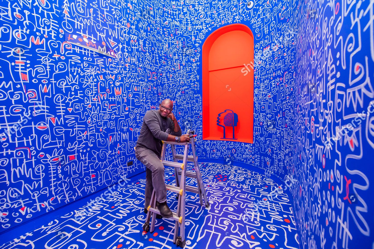 Victor Ekpuk is a Nigerian-born contemporary artist based in Washington, DC. His art, which began as an exploration of nsibidi “traditional” graphics and writing systems in Nigeria, has evolved to embrace a wider spectrum of meaning that is rooted in African and global contemporary art discourses. His art is inspired by nsibidi, a sacred means of communication among male secret societies in southeastern Nigeria. Evolving out of the graphic and writing systems of nsibidi, Ekpuk’s art embraces a wider spectrum of meaning to communicate universal themes. “The subject matter of my work deals with the human condition explained through themes that are both universal and specific: family, gender, politics, culture and identity,”