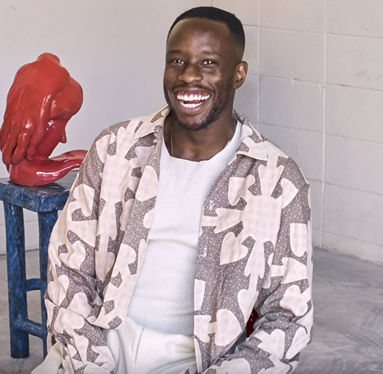 Oakland-based artist Woody De Othello creates anthropomorphized household objects in ceramic. Belying their cheery and colorful veneers is a darkly comedic sense of exhaustion. Born in Miami to a family of Haitian descent, Othello is interested in the nature of many African objects, which offer both ritual and utilitarian functions and possess a spirit of their own. His sculptures express a tension between the animate and inanimate and draw humor from a place of pain.