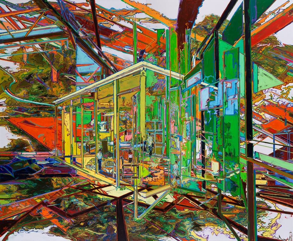 Born in 1979 in Shenyang, northeast of Beijing, You began painting at a very young age, eventually studying at the Lu Xun Academy of Fine Arts in his native city. Today he is best known for his highly-saturated canvases which are a riot of near-psychedelic colour and line. He is fascinated by the ever-changing urban environment, and the seemingly endless possibilities that cities seem to suggest. Accordingly, his works often contain numerous perspectives — leaving the viewer with the impression of looking in many directions at once. ‘Our eyes have a limited visual field, so I may combine the back, front, upward or downward perspectives to form a composition,’ the artist explains. ‘I am drawn to architectural elements such as spiral or straight staircases,’ which, he has said, ‘express the heights or depths of human life.’