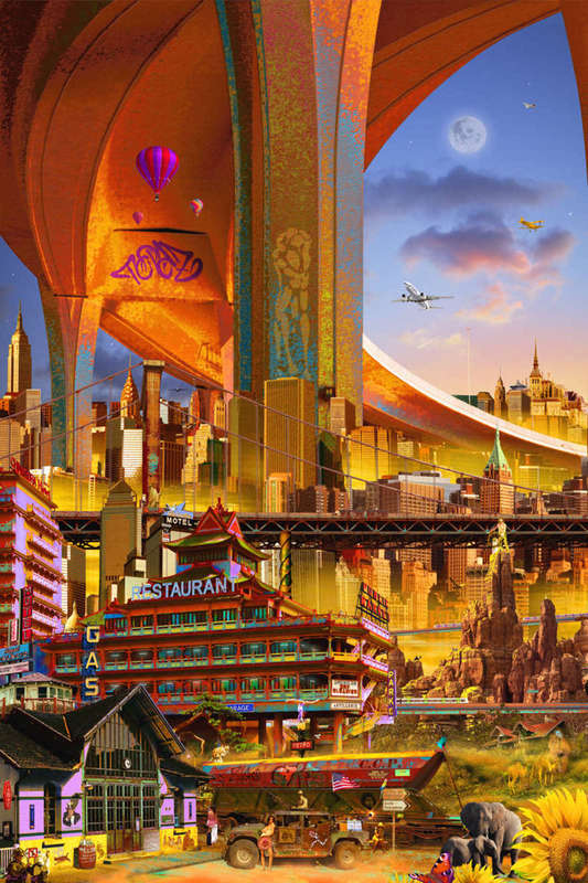 Yves Krief (1959) is a photographer who mixes photography and graphics disclosing the imagination based on the unconscious and symbolic. All his paintings are the consequence of the fusion of multiple images captured during his various trips (New York, Paris, London, Cuba). Through his photography Krief tells universal stories with multiple layers. Each of the paintings crosses the barrier between the delayed memory in order to start a conversation with the unconscious of the spectator. In every composition the whole is being melted into a set that appears clearly constructed, structured and coherent. The artist creates settings that are open to multiple interpretations, where everything is in balance and nothing predominates, because of that, the meaning of the artwork is only induced by the experience of the spectator. To emphasize the idea of narrating universal stories, Krief gives the title ‘Cent Titres’ to all his paintings. Because of its phonetic, it can be understood as untitled or hundred titles, that helps to reinforce the ambiguous of the artworks for which there are an infinite number of ways to read it. Nowadays, the viewers mind has captured so much information that it’s impossible to synthetize, there is a need to give everything a meaning, that can be done through emotional intelligence. At this point the image becomes a mirror of reality in the viewer’s mind. Those images are merged resulting in artworks of high impact.
