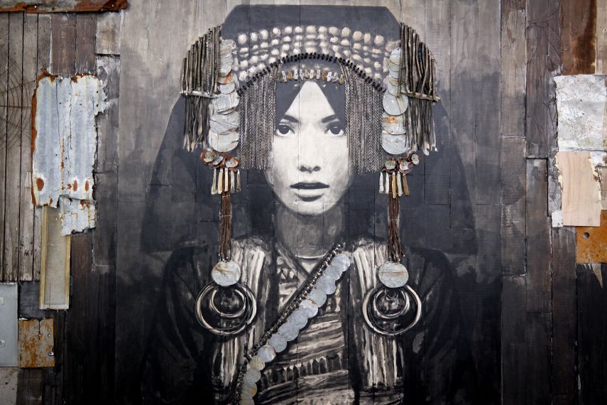 YZ is a French artist, born in 1975, she lives and works in Abidjian. YZ, pronounced "eyes", is an artist committed to intuition and guided by a desire for humanity. She became known as early as 2003, thanks to the series Open your eyes, its first urban-scale project using the stencil technique she declines on multiple media. Indeed, constrained by this technique, YZ seeks her own signature aesthetic. Thus, paper, Chinese ink and roll soon find their place at the heart of her work. With extreme requirement, YZ navigates through projects in the broad spectrum relying on her instincts. Without artifice, she paints, glues and sprays female figures of the 1900s, urban landscapes, or portraits impactful that make sense in the struggle against slavery and for civil rights. Her approach fits more into a global dynamic. Alternately poster designer, videographer, visual artist, she appropriates a space with which she forges an intimate relationship. YZ becomes one of the major figures of Street Art in France. The young woman was soon recognized as one of the most in vogue artists and today enjoys international recognition in the world of street art, with exhibitions at the Cartier Foundation, the Institute of Prague or the Blachère foundation. Through a timeless aesthetic, YZ travels through her own history and reflects our times and our society a light, which for soft, is still surprisingly faithful. In the street, the human figure and its place of life remains the central theme of the artist. YZ attempts to situate the place of human beings in our society, she describes and decrypts our lifestyles through the staged image of the dwellers of the cities through which she passes. Undoubtedly, YZ work continues thematic whose guideline is the most complex and most fascinating subject: the human.